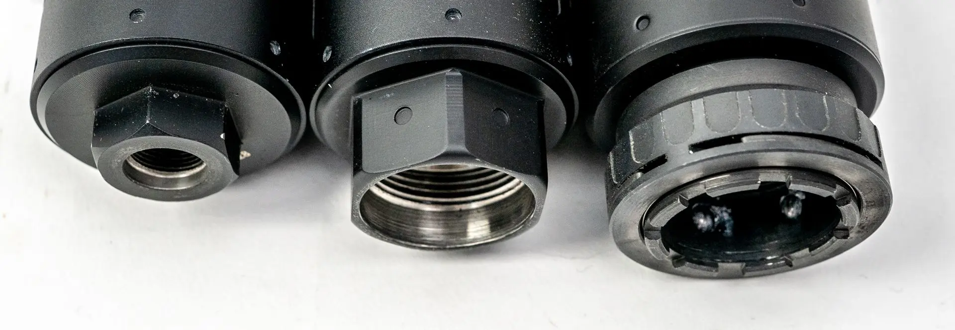 For the QD and QDL versions you have the choice of a B1 birdcage style muzzle device or muzzle brake. The QD (M27x1.5) moderators will also fit ASE muzzle devices with the same external thread.